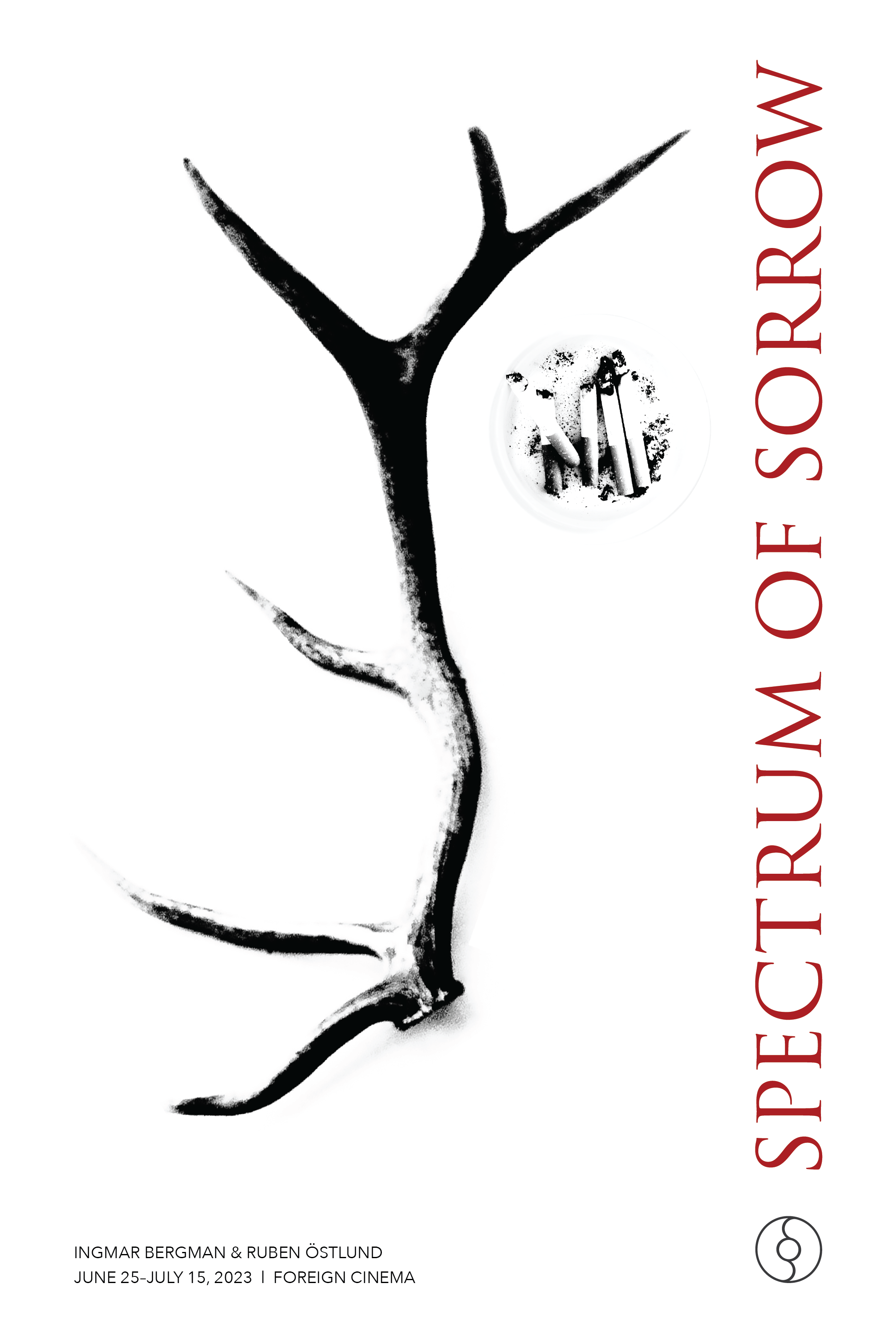 Each poster isolates a singular, symbolic subject to create direct psychological confrontation. The eye intersected by a knife merges vulnerability and violence into one controlled image, while the antler form introduces a stark, sculptural reference to Nordic landscape and fragmentation.