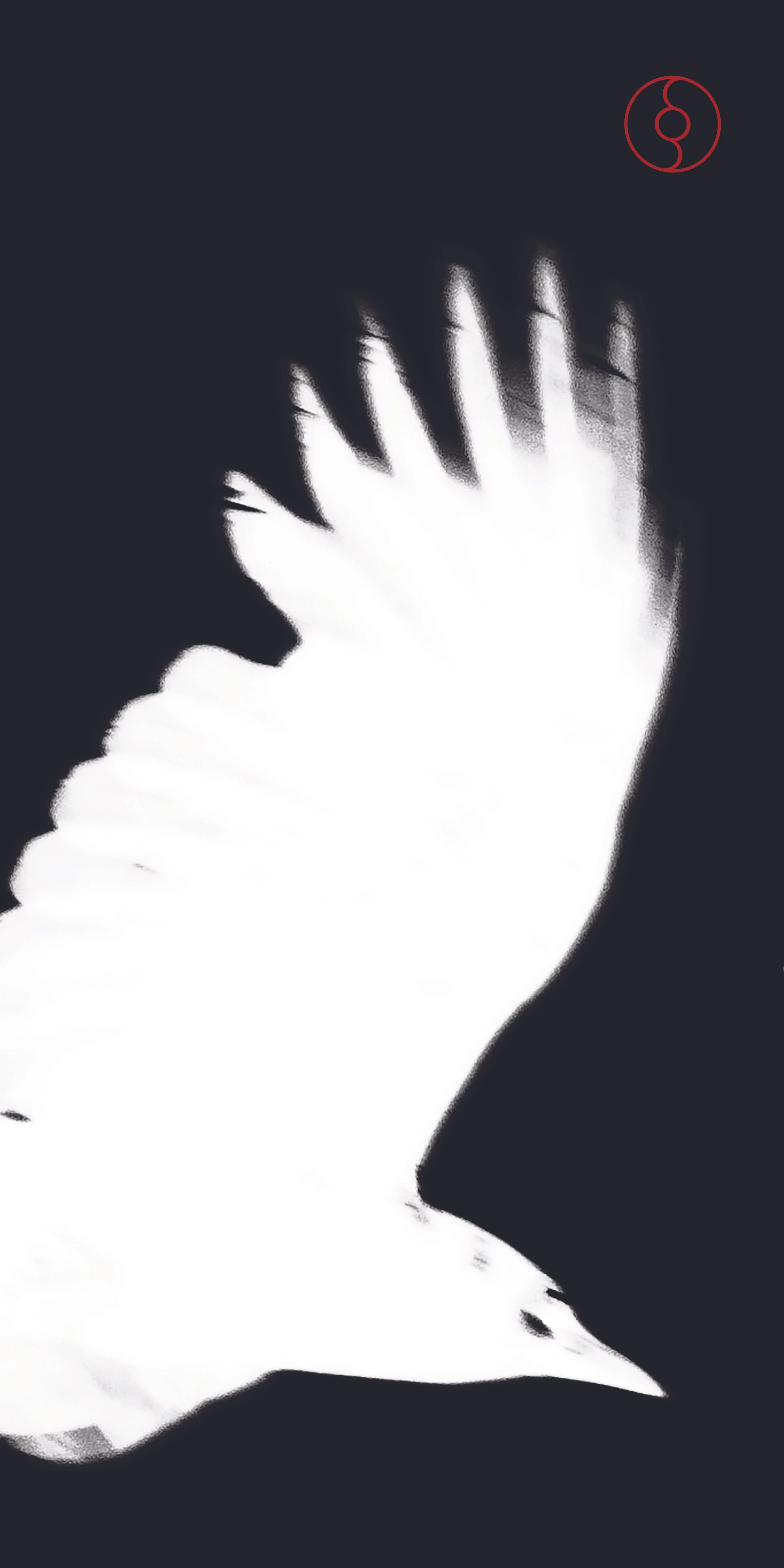 High contrast reduces the imagery to essential light and shadow, heightening drama through restraint. Vertical typography along the edge provides structural rigidity, and a restrained red title punctuates the monochrome field with precision.